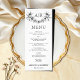 Quadro floral preto e branco com cartão de cardápio do orçamento do monograma. Adicione um toque de elegância à sua recepção de casamento com este cartão de menu monograma personalizado, concebido para realçar o seu estilo pessoal e a cozinha elegível do evento. A frente apresenta um quadro floral preto sofisticado no estilo de vintage, formando as iniciais do casal em preto. O delicado arranjo floral traz uma sensação romântica e eterno ao design. Sacudir a placa para revelar um fundo preto sólido que melhora a estética geral com sua elegante simplicidade. Quer seja exibido na configuração do local de cada convidado ou compartilhado como uma manutenção, este cartão de menu combina perfeitamente a praticidade e o encanto.