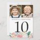 Sinais de número de tabela floral cor-de-rosa para casamento, aniversário ou outras ocasiões especiais em que são necessários sinais de números de tabela. Incluir várias fotos da noiva e do noivo ou casal ao longo dos anos ou suas fotos de noivado para uma placa de mesa divertida para convidados. É divertido ter fotos da mesma idade no mesmo sinal e fotos diferentes em cada mesa que os hóspedes se misturam. Impresso em ambos os lados para visualização dupla. A cor do texto preto pode ser alterada para coordenar com as cores do seu casamento ou evento. ASSISTÊNCIA: para obter ajuda com a modificação/personalização do design, alteração de cor, transferência do design para outro produto ou, se você quiser coordenar itens, entre em contato com o designer ANTES DE ENCOMENDAR através da guia MENSAGEM de bate-papo Zazzle ou por e-mail em makeitaboutyoustore@gmail.com.
