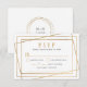 Este cartão RSVP de moldura geométrica dourada falsa está na moda e irá combinar com a maioria dos conjuntos de convites de casamento. Sinta-se à vontade para entrar em contato com o designer se tiver alguma dúvida (info@lemontreecards.com)