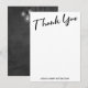 Nesta bonita criação com tema de casamento, eu usei uma fonte de caligrafia elegante e moderna para criar uma sobreposição de tipografia gráfica com a frase "Obrigado". Preencha o espaço em branco na parte inferior com seus detalhes para personalizar o design. No verso, o cartão foi coberto com uma imagem que retrata uma lousa texturizada. Sobrepondo isso, há um conjunto de luzes de Edison vintage redondas e brancas. Todas as camadas foram adicionadas separadamente e deixadas desbloqueadas para lhe dar o máximo controle de design.