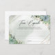 Suculenta a estrutura de ouro do eucalipto Cartão de Cápsula Tempo Um design de boho realmente adorável que tem cativado todas as celebrações e eventos nos últimos anos, nomeadamente um buquê lavado - uma mistura de suculentos e eucalipto verde, tecida elegantemente em torno de uma falsa estrutura geométrica de ouro. Você pode ter certeza de que com esta design para sua papelaria para o evento, você será moderno e extremamente impactante, e seu evento será lembrado por muito tempo. O design apresenta a aquarela pintada manualmente com flores suculentas em verde escuro profundo, verde poeirento, verde sábio e azul poeirento, graciosamente combinadas com galhos verdes eucaliptos, e delicadas tecidas em torno de uma falsa estrutura geométrica dourada - então, um terrário moderno e recente. Toda esta buquê de suculentos envolve elegantemente as inscrições no centro, como se fosse um abraço de amor tenro. Nesta bela design de tendências, preparamos todos os elementos necessários para a sua Festa de Boho - como convites para casamento, noivado, elopemento, aniversário, jogos, posters de boas-vindas, placas de mesa e muito mais, para que você possa ter um conjunto completo desse design boho excepcional com uma aquarela suculenta flores pastel verde-eucalipto, folhas verdes de sage tecidas em faux gold frame. Contacte-me para obter itens correspondentes ou para personalização, Rosas emborrachados ©