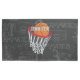 design personalizado de basquete e de aro em um fundo de design de quadro de cinza escuro e claro com um padrão de termos de basquete. Apenas personalize o nome para adicionar o nome do fã de basquete, jogador de basquete ou treinador de basquete. Ideal para jogadores de netball também!