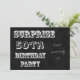 É a grande surpresa da 50ª festa de aniversário e você precisa de um convite divertido. Este convite apresenta um design de tipografia divertido em fundo de quadro. A frente lê "SURPRISE 50th FESTA DE ANIVERSÁRIO" e pode ser personalizada com o nome do aniversariante ou mulher. Nas costas há outro quadro para os pormenores do aniversário e um lembrete de que é um segredo! Este é um convite moderno excelente, mas antigo, para uma festa surpresa da 50ª. Direitos autorais