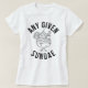 Esta camisa apresenta um design gráfico impresso a tinta preta. A design inclui a frase "ANY DEN SUNDAE" numa fonte ligeiramente curvada e estilizada. Abaixo do texto está uma ilustração de um sundae em um vidro enraizado. O sundae tem vários pedaços de sorvete, reentrâncias, e um cone de waffle. A ilustração é feita em um estilo simples e esboçado.
