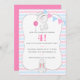 Convite de festas de aniversário de criança temático, cor-de-rosa e azul, do coelhão chevron, personalizável para qualquer idade.