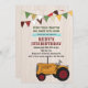 Convite de Boato de Nascimento de Garoto de Vintagem Amarela Convite de Boato de Nascimento de Trator Convite de Fazenda de Aniversário Convite