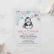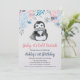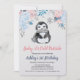 Penguin Winter Animal 1rua First Birthday Floral Glitter Invitation