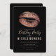 Convite para Lábios de brilho Dourados com Rosa festa de aniversário