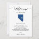 Este cartão moderno e elegante é a adição perfeita às suas bolsas de boas-vindas do hotel. Digite os eventos principais e uma nota personalizada para ajudar seus convidados a navegar no fim de semana. O tamanho permite que você insira todas as informações necessárias. Tudo neste cartão é editável. Para alterar cores ou mover elementos, clique em personalizar e, em seguida, em "editar usando a ferramenta design." Selecione o elemento que deseja editar e, em seguida, use as ferramentas para fazer as alterações.