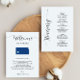 Este cartão moderno e elegante é a adição perfeita às suas bolsas de boas-vindas do hotel. Digite os eventos principais e uma nota personalizada para ajudar seus convidados a navegar no fim de semana. O tamanho permite que você insira todas as informações necessárias. Tudo neste cartão é editável. Para alterar cores ou mover elementos, clique em personalizar e, em seguida, em "editar usando a ferramenta design." Selecione o elemento que deseja editar e, em seguida, use as ferramentas para fazer as alterações.