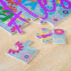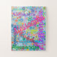 Este quebra-cabeça de diversão apresenta um design de giro colorido com o nome de sua escolha que aparece em várias fontes e cores diferentes. Os nomes são exibidos sobre um fundo azul com flores coloridas. presente de excelente para qualquer garota que goste de um quebra-cabeça personalizado!