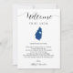 Este cartão moderno e elegante é a adição perfeita às suas bolsas de boas-vindas do hotel. Digite os eventos principais e uma nota personalizada para ajudar seus convidados a navegar no fim de semana. O tamanho permite que você insira todas as informações necessárias. Tudo neste cartão é editável. Para alterar cores ou mover elementos, clique em personalizar e, em seguida, em "editar usando a ferramenta design." Selecione o elemento que deseja editar e, em seguida, use as ferramentas para fazer as alterações.