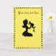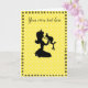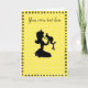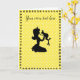 Uma bela silhueta de uma princesa prestes a beijar seu príncipe em bolinhas amarelas com uma mão vintage puxada de volta na fronteira floral. Use seu próprio texto para tornar este cartão especial.