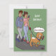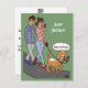 Uma carta com um desenho engraçado sobre um cachorro e seu dono olhando seus telefones enquanto caminhava. O plano de fundo, a imagem e o texto podem ser personalizados. Cartoon original de BDcartoons.