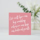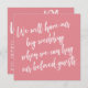 A distinção deste conjunto deve-se à fonte de script manuscrito ousado e casual usada para frases de sotaque. Se você está na posição de precisar informar seus convidados de casamento que você teve que mudar seu grande encontro, aqui está uma opção ousada. Nesta peça, a letra de script escrita à mão foi usada para criar gráficos de tipografia simples. Na frente está "Teremos nosso grande casamento quando podermos abraçar nossos amados convidados" e na parte de trás, "Novo Plano". Use os campos de modelo para adicionar seus detalhes pessoais e tornar este design moderno seu próprio. O plano de fundo pode ser alterado para qualquer cor que você preferir. Por favor, responda a quaisquer solicitações especiais ou personalize a assistência. 105 //