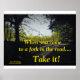 QUANDO VOCÊ CHEGA A UM FORCO NA COTAÇÃO RODOVIÁRIA, UM item na linha HOUSE OF SUNSHINE de reproduções de arte colocadas em produtos projetados para uso em casa ou no escritório. A citação motivacional é colocada na reprodução de uma pintura paisagística original feita pela artista e escritora do Kentucky, GERRY K. FURGASON.A obra está incluída em sua série de palavras do SUL DRAWLS para viver e frases para lembrar assim como sua coleção de PRAYERS AND THOUGHTS.