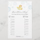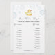 Placa de jogo de chá de fraldas com pata de borracha amarela com bolhas para combinar a Coleção de Borracha Ducky do compro Adore Paper Co Zazzle. Uma maneira divertida de interagir com os convidados do chá para adivinhar a idade dos futuros pais nas fotos.