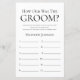 Este moderno Quão Velho Era o chá de panela? O jogo é simples e encantador - perfeito para qualquer chá. Este jogo fácil e divertido traz muitas risadas a qualquer chá! Peça a familiares e amigos que lhe enviem fotos do noivo em diferentes idades e as façam imprimir. Numerá-los e colocá-los perto destas folhas de jogo. Basta dar uma folha a cada convidado (não se esqueça das canetas) e deixar a competição começar! Ficará surpreso com quantas pessoas conhecem realmente a idade do noivo. Em segundos você pode ver como sua folha de jogo ficará. Basta selecionar Personalizar este Modelo e digitar o nome do grupo.