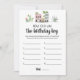 Quantos anos tinha o Cartão de Jogo do Aniversário