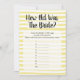 Amarelo e branco Adivinha o jogo da Idade da Noiva para chás de panela. Listras brancas e horizontais desenhadas à mão.