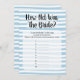Azul e branco adivinhem o jogo da Idade da Noiva para chás de panela. Listras brancas e horizontais desenhadas à mão.