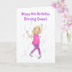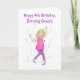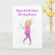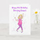 Um cartão de aniversário bonito para uma criança de 4 anos com uma menina dançando e saudando, "Feliz 4 Aniversário, Rainha Dançante". Também disponível para idades 5, 6 e 7.
