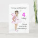 Um 4º Cartão de Aniversário para uma afilhada, com uma fada negra num vestido cor-de-rosa, a partir de uma ilustração com aquarelas de Judy Adamson. Sinta-se à vontade para personalizar a mensagem de dentro e entre em contato comigo através da minha loja se você quiser mudanças no cobrir frontal.