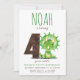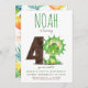 Celebre o seu quarto aniversário com o nosso encantador convite ao tema Dinossauro Verde! Apresentando um dinossauro amigável e sotaques pré-históricos, este convite é perfeito para uma celebração galardoada de dinossauros. Personalize com o nome do seu filho e os detalhes da festa. Ordene agora que o dia especial do seu filho seja inesquecível!