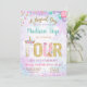 Celebre o mágico 4º aniversário do seu amante de unicórnio com este belo convite! Projetado com sotaques florais de cor aquosa e brilho dourado (sem brilho bagunçado), este convite vai definir um tema maravilhoso para o grande dia!