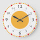 Relógio elegante do estilo vermelho e ouro para um efeito ensolarado brilhante. Ovos ensolarados para cima.
