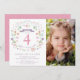 Este elegante e bonito terceiro convite de aniversário apresenta uma coroa floral ilustrada com a expressão "Celebração de Vamos" em torno do número 4. A cor do texto, a fonte, a mensagem e a foto podem ser alteradas para seu gosto. A parte de trás do convite apresenta um fundo cor-de-rosa (que pode ser trocado para qualquer cor da sua escolha) com um padrão quatrefoil branco. Uma maneira perfeita de convidar convidados para comemorar o aniversário especial de uma garota.