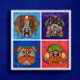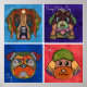 Quatro rostos feios únicos com padrões abstrato ousados e coloridos: Pug, Bernese Mountain Dog, Labrador, Poodle. Popular com amantes de cães e amantes de animais de estimação e amantes de cães de resgate.