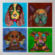 Quatro rostos de cachorro feio e ousados padrões abstrato: Bulldog Francês, Springer Spaniel, Boxer, Inglês Pointer. Popular com amantes de cães e amantes de animais de estimação e amantes de cães de resgate.