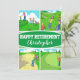 Feliz aposentadoria. Cartão de aposentadoria do tema Golfer. Quatro ilustrações engraçadas de golfe. Em um, um jogador de golfe está tirando um tiro no campo de golfe. Ele não bate na bola de golfe e seus colegas de golfe acham isso hilário e estão rindo incontrolavelmente. Em outro, um jogador de golfe atira em um campo de golfe e tem inúmeros revezes sortudos que impressionam seus amigos. Também um desenho onde um golfista está preso em um bunker e não tendo muita sorte saindo da armadilha de areia. Finalmente, um jogador de golfe está no verde, mas sente falta de sua posição por uma fração. As charges são do cartunista britânico Nigel Sutherland.