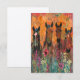 O cartão apresenta uma pintura colorida de quatro cavalos num campo de flores. Os cavalos são pintados em estilo dinâmico com cores ousadas e pinceladas expressivas. O sentimento geral da pintura é de beleza e paz. A parte traseira da placa é vazio para que você possa gravar mensagens ou desenhar.
