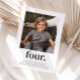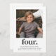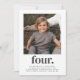 Um convite moderno de 4 de aniversário, com sua própria foto e a palavra 'quatro' por baixo.