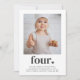 Um convite moderno de 4 de aniversário que inclui a sua própria fotografia e a palavra "quatro" com um coração por baixo. Você também pode editar toda a cor e estilos do texto, além da cor do coração, se quiser. Basta clicar no botão 'Personalizar' -> 'Editar usando a ferramenta design'.