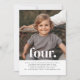 Um simples convite para o quarto aniversário, com sua própria foto e as palavras 'quatro' no topo.