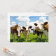 Quatro vacas em bate-papo interrompidas no bate-papo diário pelo fotógrafo. Ficando no campo em um belo dia de verão com uma paisagem nublada de excelente sobre o fundo. Foto tirada na Frísia, a casa das vacas frísias. Considerem-nas aliens na comunidade das vacas dos frisianos, mas são mulheres bonitas!