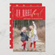 Este cartão de feriado caprichoso apresenta um sentimento divertido num guião de folha de ouro falso e lúdico num fundo vermelho ousado.