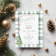 Que Divertido! Cartão postal de convite de festas de Natal. Xadrez verde russa com arco vermelho festivo e cor d'água dos detalhes da árvore de Natal. A design verde-branca tem um aspecto antigo e tradicional com os toques modernos. Encontre mais produtos de papel de carta de Natal com este tema de design na Coleção de Árvore de Natal da Rústica Xadrez Verde, na Bela Abstrato.