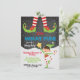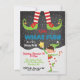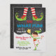 Super Bonito "Oh, que Divertido!" Festa de Natal ou Natal do Pajama. Possui um elfo feliz, fontes divertidas e um céu noturno nevado. Excelente para uma festa de pijama, celebração de aniversário ou qualquer celebração de feriado.