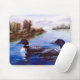 De uma pintura a óleo original por Brenda Thour de um par de mergulhões-do-norte em um lago durante um por do sol de azuis bonitos e de roxos. Original vendido para um leilão da caridade. Copyright por Brenda Thour 2004.