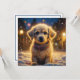 Cachorro bonito lá fora numa noite de neve personalizada cartão de Natal.