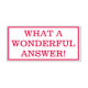 Este design de carimbo encorajador apresenta a mensagem motivacional "QUE RESPOSTA MARAVILHOSA!". Ele poderia ser usado por um professor de escola, educador ou orientador ao marcar tarefas, para reconhecer que o aluno fez um trabalho de excelente.
