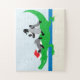 É uma cena de jacaré baleada, pronta para montar. Mede 11 x 14 com 30 grandes quebra-cabeça.