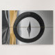 The piece 'Cosmic Encounter in the Abstract Desert' portrays the fusion between extraterrestrial beings and an abstract landscape, creating a surreal and captivating scene.