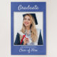 Um moderno roteiro branco de lançamento de fotos clássicas. O design inclui o roteiro branco "Formando" sobre uma foto na frente e duas fotos no verso e um modelo para preencher detalhes sobre os planos da faculdade do formando. Ambos os lados estão bordados com uma fina linha branca e o fundo pode ser personalizado com a cor escolhida.