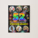 Este design de quebra-cabeça de quebra-cabeça animado e divertido, com tema de aniversário, apresenta um grande número "52" com um espectro multicolorido de arco-íris inspirado num padrão de gradiente, juntamente com a mensagem "FELIZ 52º ANIVERSÁRIO" e um nome personalizável, num padrão inspirado por fogos de artifício multicoloridos e celebratórios. As imagens perto do topo e do fundo podem ser personalizadas. talvez com fotos do receptor e/ou da família e amigos do destinatário. Um ousado e editável quebra-cabeça de aniversário como este pode ser usado para celebrar o aniversário de 50 segundos de alguém. (Fotografia © Storytree Studios, Stanford, CA.) [~Z0000664]