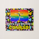 Esta vibrante e divertida design de quebra-cabeça de quebra-cabeça com tema de aniversário apresenta um grande número "53" com um espectro multicolorido de inclinação inspirada no arco-íris, juntamente com a mensagem "HAPPY 53rd BIRTHDAY", e um nome de receptor personalizado. O fundo tem um padrão alegre, colorido e amoroso de corações. Um quebra-cabeça de aniversário ocular e editável como este poderia ser usado para celebrar o cinquenta e terceiro aniversário de alguém. [~Z0000611]